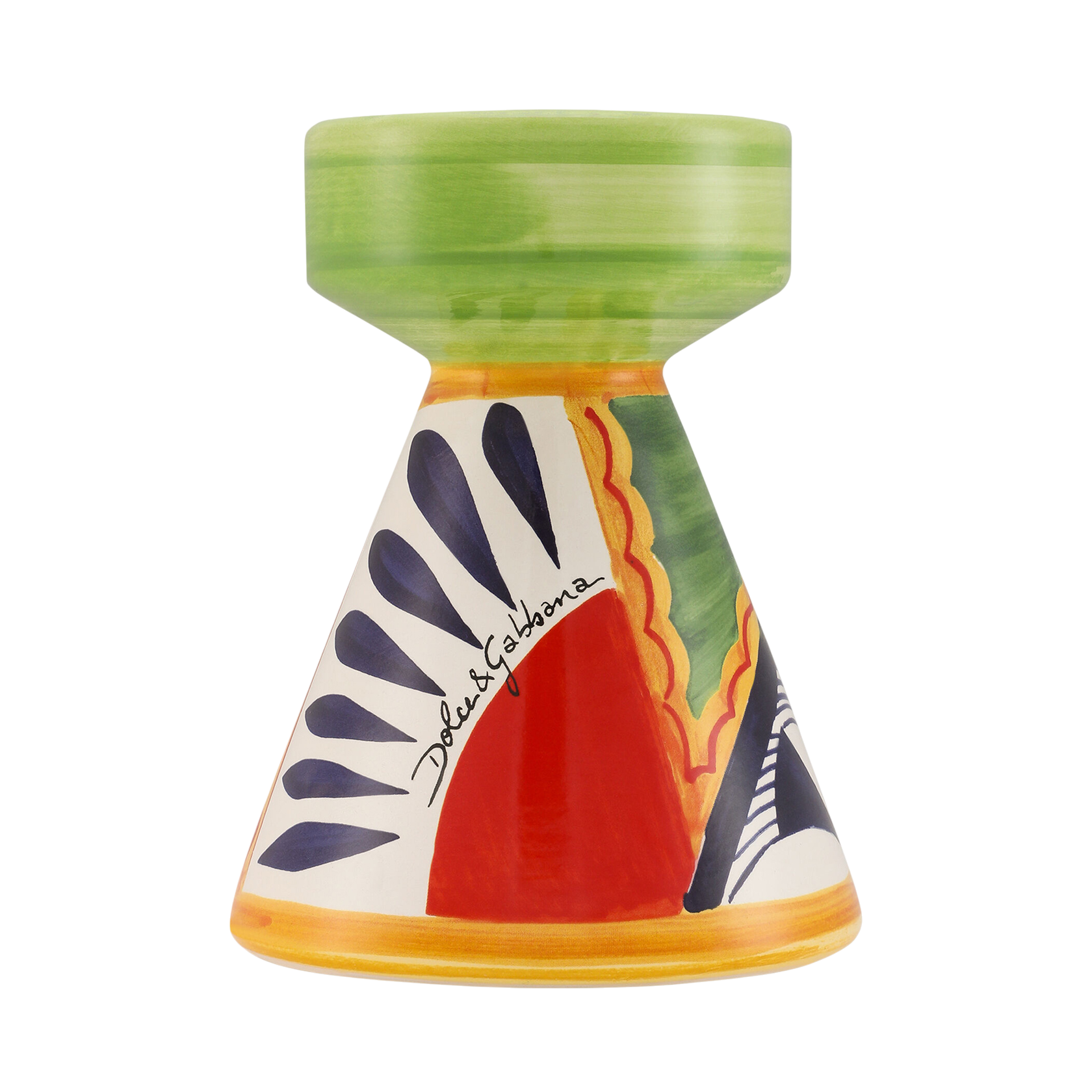 This elegant ceramic candle holder, with a decorative motif inspired by a foulard print, echoes the Carretto Sicilano: a folkloric element from a place of traditions, artistic craftsmanship, landscapes and unique colours which have always been at the heart of Dolce&Gabbana’s aesthetics.