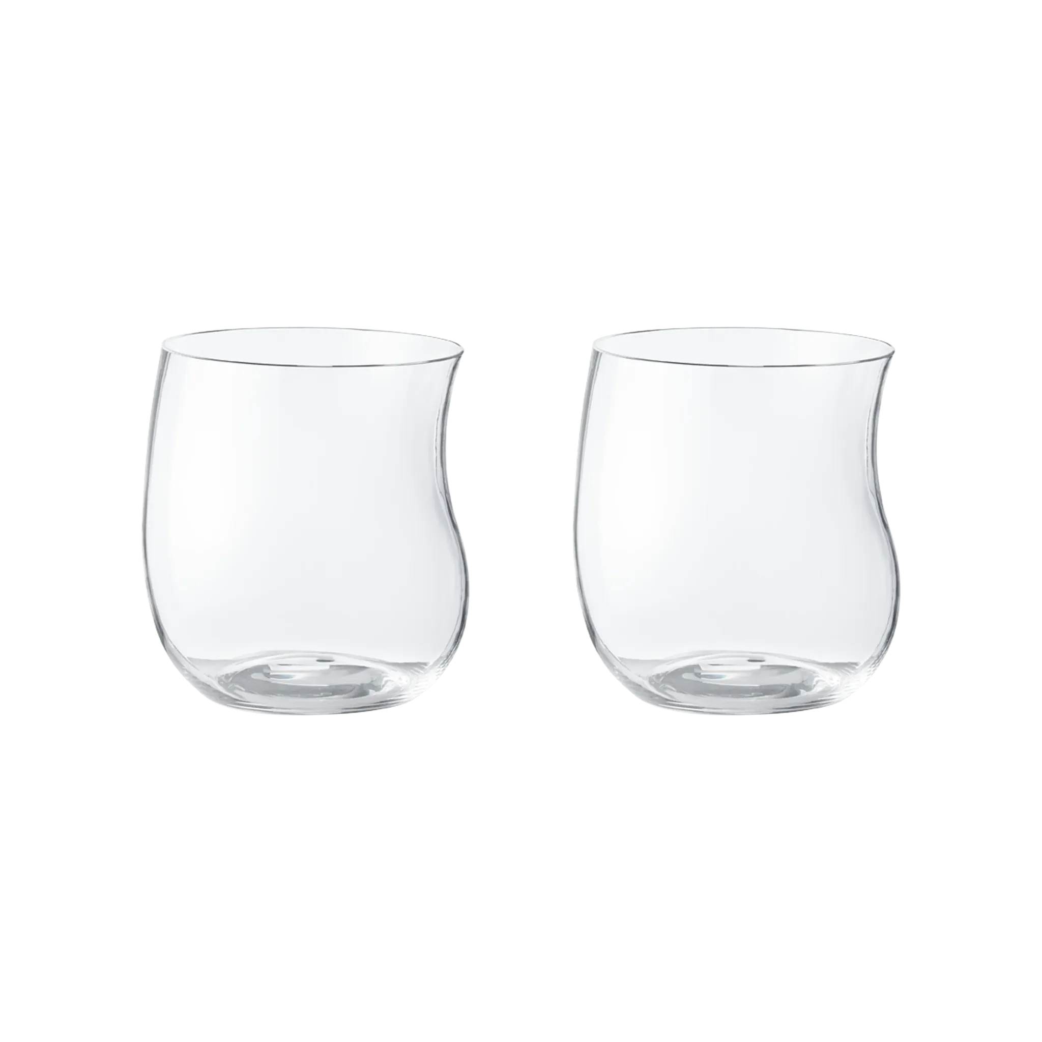 The slightly curved, sensuous shape of these drinking glasses add an unexpected detail to the dining table. Unusual to look at and beautiful to hold, the tumblers work for water at a dinner party or for fruit juice at breakfast time.
